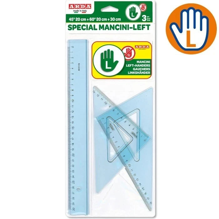 1 riga 30 cm - 1 squadra 60°/30 cm -1 squadra 40°/30 cm